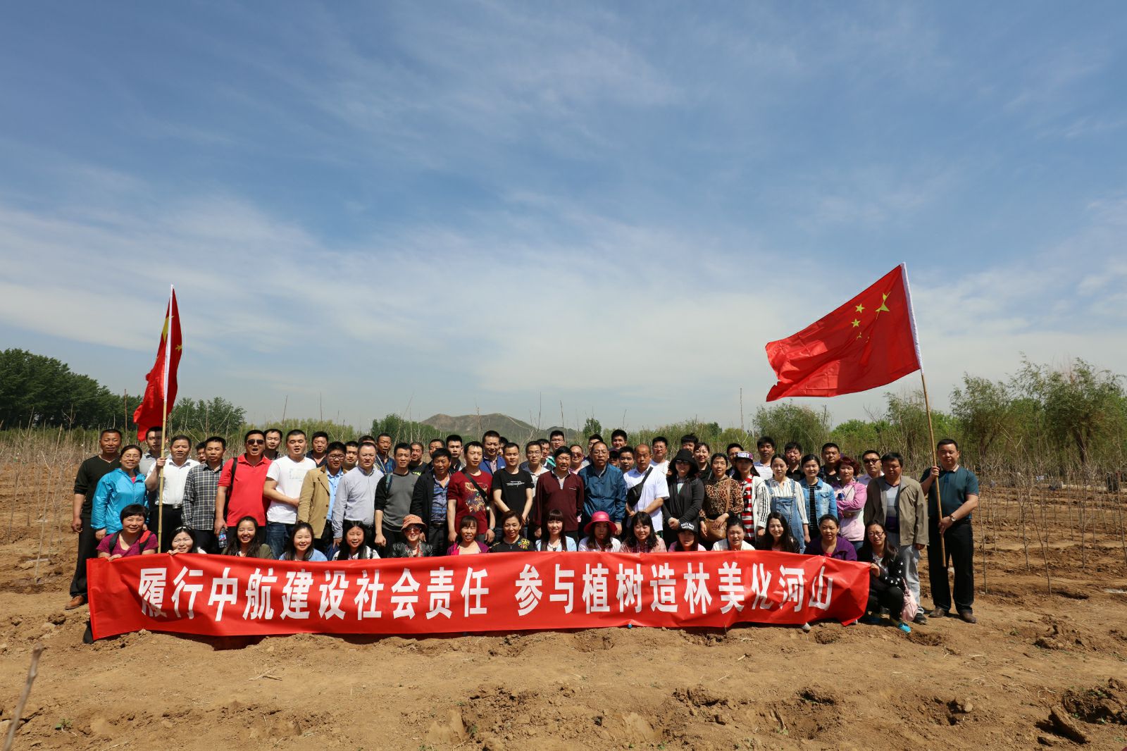 上午10时许,干部职工乘车来到怀柔区桥梓植树基地。在集团领导进行简短动员后,同志们在基地工作人员的指导下,两人一组、结对配合,挖坑、立树、培土、浇水,兴致盎然地干了起来。经过一个多小时的紧张劳动,山野中诞生了一片整齐排布的银杏树林。大家虽然都出了汗,但看到自己亲手创造的成果,想到又是一片绿色的景象,个个脸上绽放出幸福的笑容。
