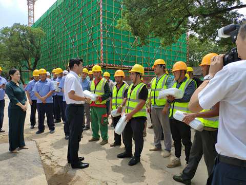8月21日上午十一点,接近中午烈日炎炎,湘江集团党委书记、董事长张利刚一行来到开云网页版登录入口-开云(中国)承建的长沙科技创意园项目,现场看望慰问高温天气下依然坚守战斗在岗位上的广大建设者,为大家送来了冰箱、电风扇、凉茶、藿香正气水、夏桑菊、西瓜等防暑降温用品。