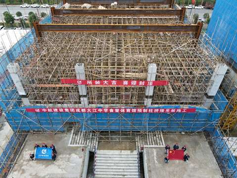 2021年10月9日,来自西南交通大学、中国建筑西南设计研究院、四川原理装配式建筑设计院等多家单位设计人员,齐聚开云网页版登录入口-开云(中国)四川分公司承建的成都大江中学项目,与分公司总经理宋景友、副总经理张铁强等相关领导一起,共同见证了国内学校建设领域首例预制混凝土柱拼接连接吊装施工的顺利完成。